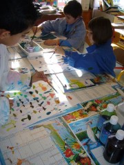 Après l'exposé de quelques notions élémentaires (qu'est ce qu'une couleur primaire ? où, comment les mélange-t-on ?) les artistes en herbe se sont lancés dans l'aventure.