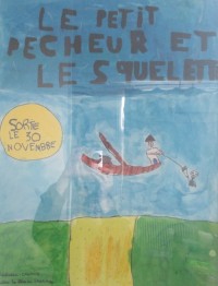 Texte écrit par deux jeunes élèves :Nous avons fait des affiches du « kamishibaï » (le petit pêcheur et le squelette) parce que nous avons beaucoup étudié l’histoire. Nous connaissons très bien surtout le texte. Ca nous a donné l’occasion d’étudier les affiches de cinéma.